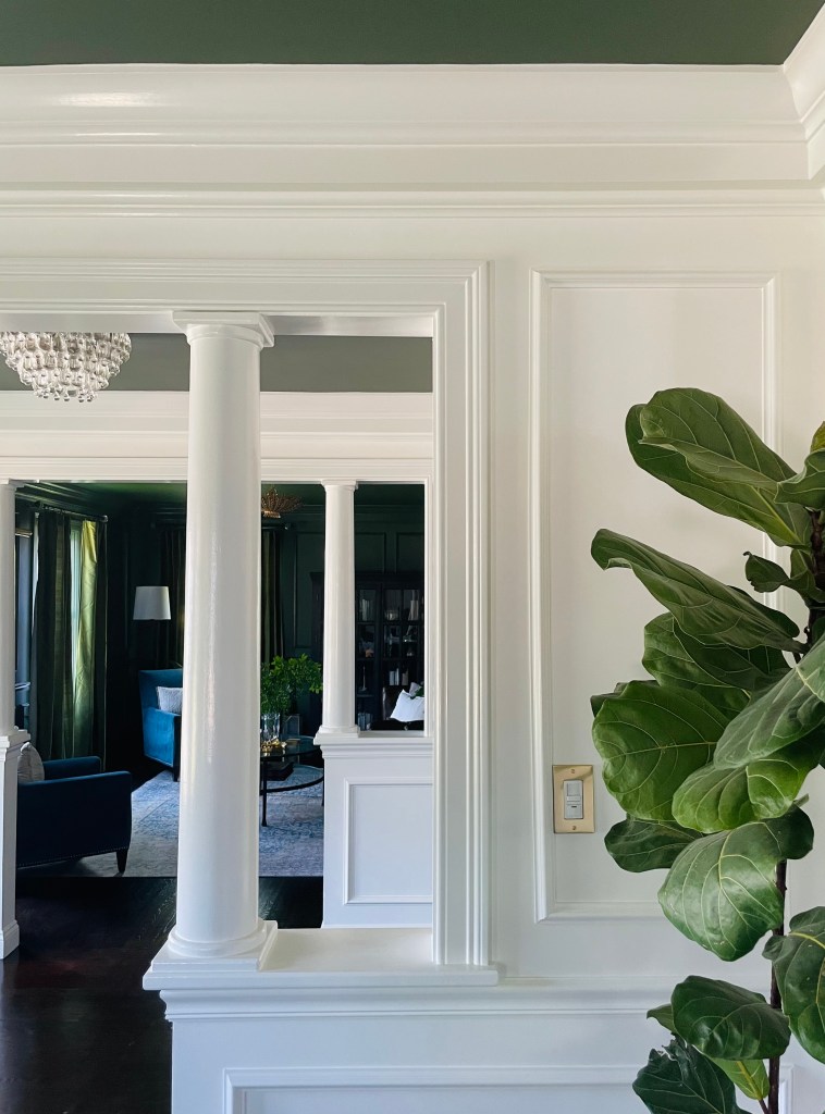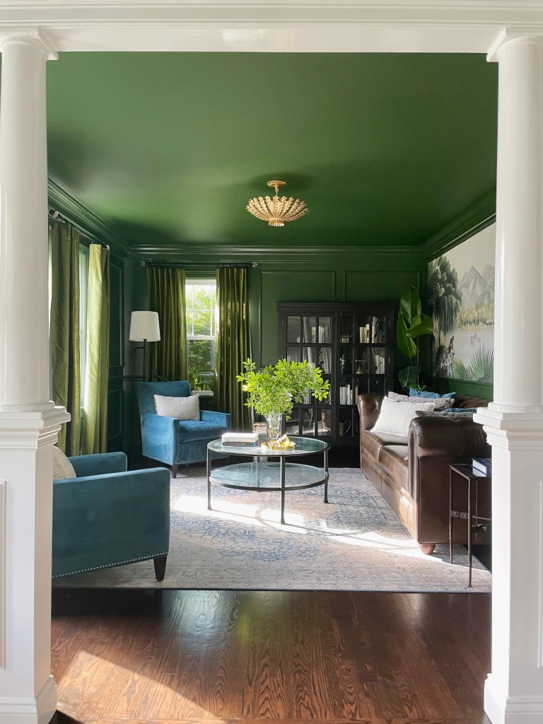 The purpose of the room, also affects color selection. I chose floor to ceiling green in our living room (much to the dismay of my very patient painter). Even though an open floor plan proved to be challenging, I wanted this room to feel dramatic and inviting. It needed to be eye-catching enough to draw attention.